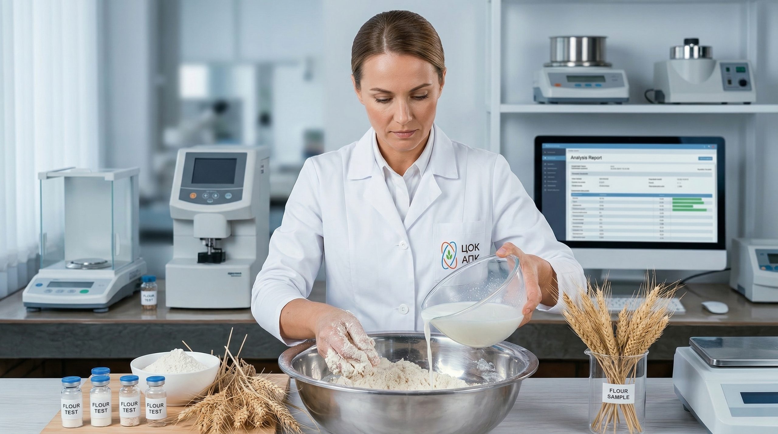 Состав муки, физические характеристики теста, показатели пробной выпечки хлеба, а также газообразующая способность и параметры клейковины (её количество и качество) определяют хлебопекарные свойства конечного продукта. Определение качества муки начинается с анализа физико-химических характеристик с использованием современного лабораторного оборудования. Специалисты выявляют влажность продукта, количественные и качественные показатели клейковины, зольность, размер частиц помола, наличие посторонних включений и степень зараженности вредителями.