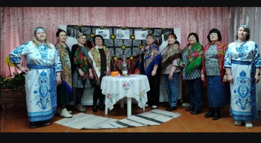 Закончились фольклорные посиделки «Пасхальный благовест» песнями, играми и чаепитием с установленными явствами, пасхальными куличами и крашенными красными яйцами.