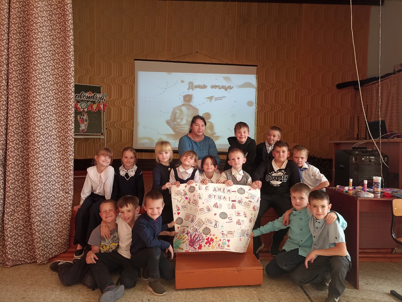 В середине осени отмечается сравнительно новый, но уже важный семейный праздник — День отца. Этот праздник ежегодно празднуют в третье воскресенье октября. Работники Вьюнского Дома культуры с учениками второго класса МБОУ «Вьюнская СОШ» провели мероприятие под названием «Мой папа — герой».